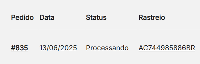 O prazo de entrega varia de acordo com o endereço e a forma de envio escolhida. Após a postagem, um código de rastreamento será fornecido no painel do seu usuário em https://taspio.com.br/my-account/orders/ como no exemplo a baixo. Também serão enviadas atualizações com cada movimentação do pacote por email.